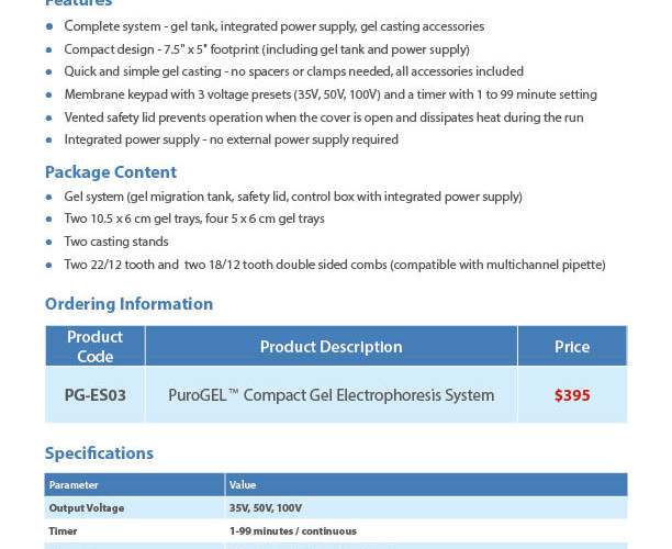 More details about the PuroGEL™ Compact Gel Electrophoresis System and ordering information can be found here.